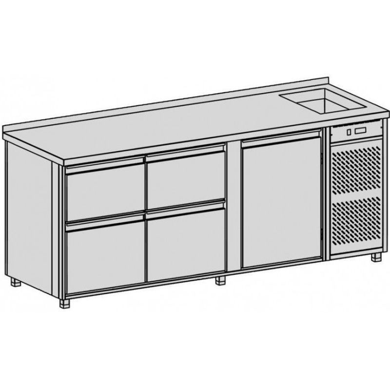 Chladiaci pult s vaňou, 4 zásuvky, 660 l