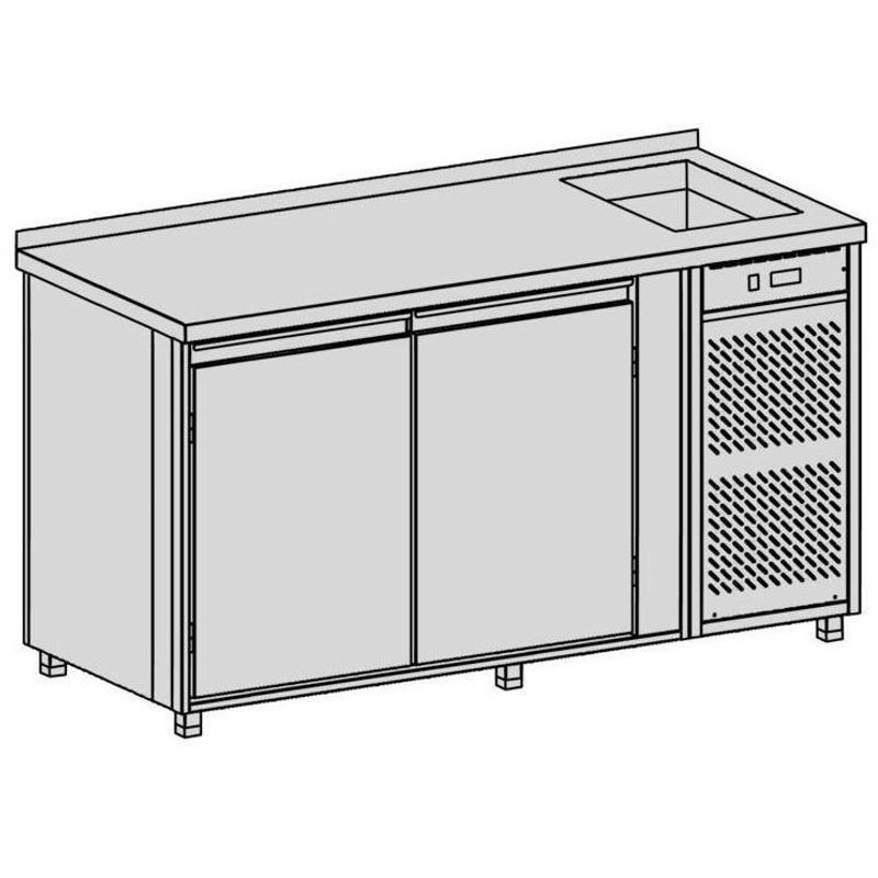 Chladiaci pult s vaňou, rozmer (ŠxHxV) 1630x700x900 mm, kapacita 449 l, príkon 332 W, pohyblivá polica na nápoje ▪ teplotný rozsah +2°C / +8°C pri okolitej teplote max. 32°C ▪ napájanie 230V / 50Hz ▪ chladiaca vaňa, chladiace médium R134a, nasávanie a výfuk spredu