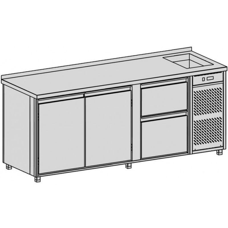Chladiaci pult s vaňou, 660 l, 2x dvere , 2 zásuvky