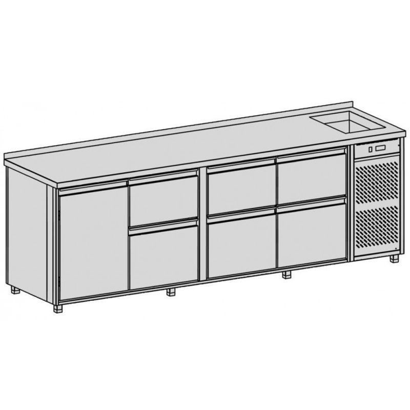Chladiaci pult s vaňou 869 l, 6 zásuviek