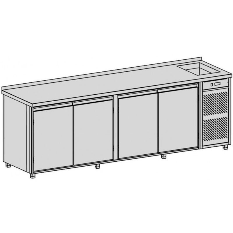 Chladiaci pult s vaňou, rozmer (ŠxHxV) 2690x700x900 mm, kapacita 869 l, príkon 480 W, pohyblivá polica na nápoje ▪ teplotný rozsah +2°C / +8°C pri okolitej teplote max. 32°C ▪ napájanie 230V / 50Hz ▪ chladiaca vaňa, chladiace médium R134a, nasávanie a výfuk spredu