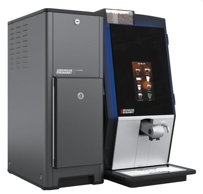 Automatický kávovar s dvomi mlynčekomi a chladničkou na čerstvé mlieko na prípravu espresso kávy a iných nápojov (espresso, cappuccino, latte macchiato, cafe au lait, coffee crema, horúca čokoláda, ...) určený pre malé kaviarne, hotely, recepcie, úrady a pod. Dotykový displej pre výber nápoja a nastavenia údržby, signalizácia odstránenie vodného kameňa. Dva zásobníky na zrkovú kávu (2x 0,7 kg) a jeden zásobník na instantnú zmes (1x 3,2 l). Hodinový výkon 120-150 šálok espresso kávy, 240 šálok instantných nápojov. Samostatný výpust horúcej vody. Možnosť prípravy 2 šálok kávy súčasne.