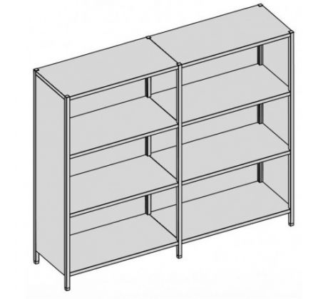 šírka 2700 mm, výška V=1700 mm (-10+20 mm), 4 x polica s výstuhou, nosnosť police 50 kg/1 polica, krytovanie, 6 nôh