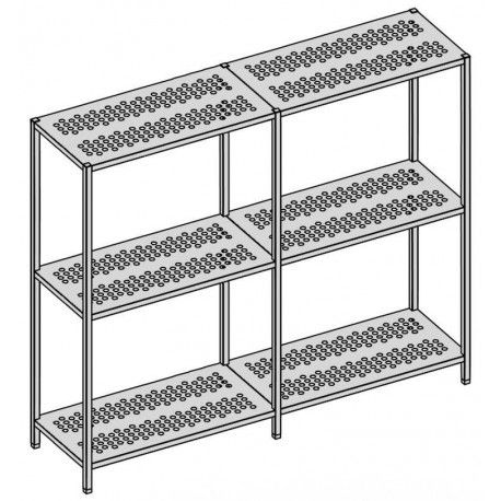 šírka 2500 mm, výška V=1700 mm (-10+20 mm), 3 x polica perforovaná - nosnosť 50 kg/1 polica, 6 nôh