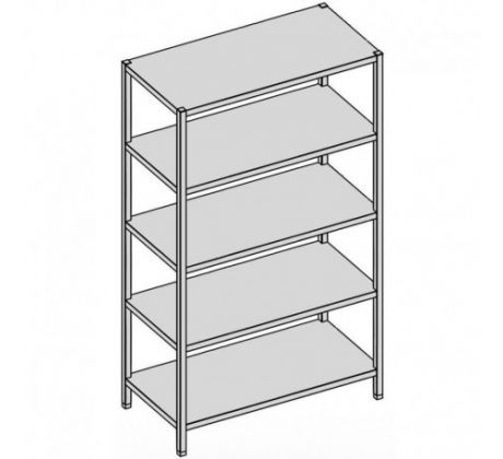šírka 600 mm, výška V=1700 mm (-10+20 mm), 5 x polica s výstuhou, nosnosť police 50 kg/1 polica