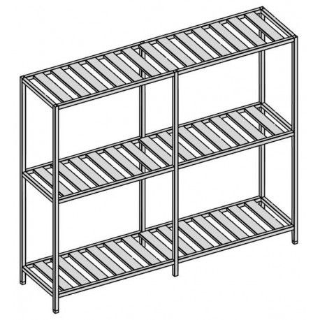 šírka 2300 mm, výška V=1700 mm (-10+20 mm),3 x rošt - nosnosť 50 kg/1 polica, 6 nôh
