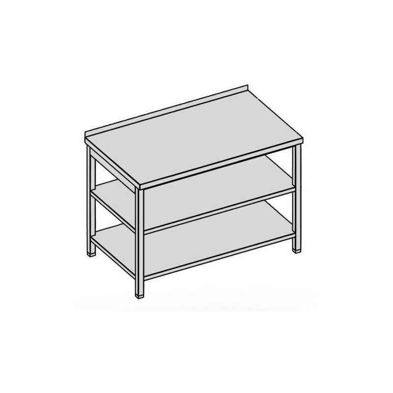 šírka 900 mm, výška V=850 mm (-10/+25 mm), hrúbka pracovnej dosky 40 mm, výška zadného lemu 40 mm, zadné nohy odsadené 25 mm, dve police - nosnosť police 50 kg,spodná polica vo výške 150 mm