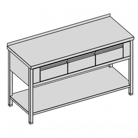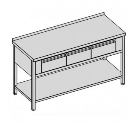 Pracovný stôl s tromi krytovanými zásuvkami GN 1/1, policou 160x60
