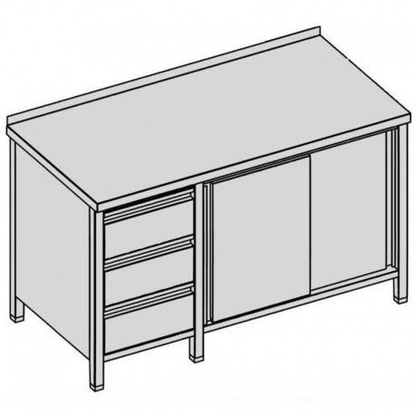 - Pracovné stoly s tromi krytými zásuvkami/ GN 1/1,/ policou