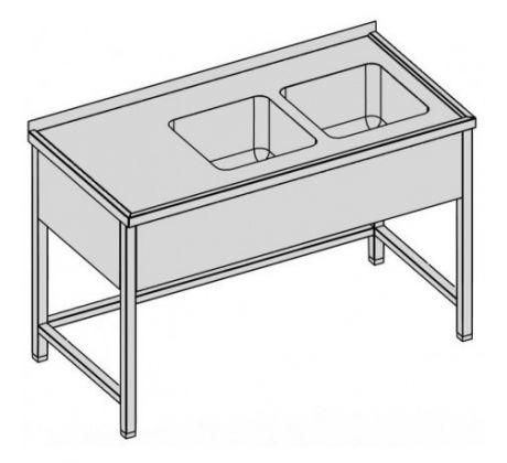 šírka 1700 mm, výška V=850 mm (-10/+25 mm), zadný lem 40 mm, zadné nohy odsadené 25 mm, 2 x drez 400x400x250 mm, kryt