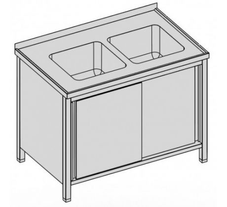 Umývací pracovný stôl dvojdrezový, krytovaný s posuvnými dverami 120x70