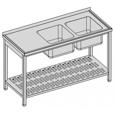 Umývacie pracovné stoly dvojdrezové s perforovanou policou