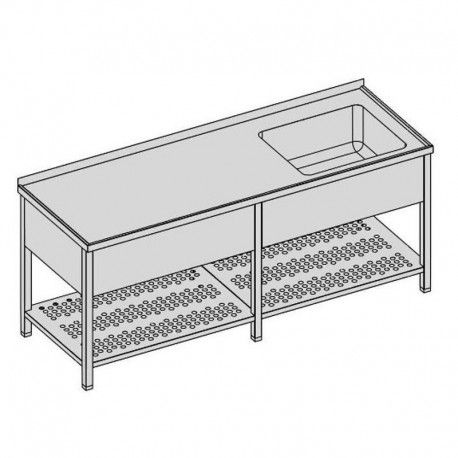 - Umývacie stoly s jedným drezom, zásuvkou a perforovanou policou/dlhé