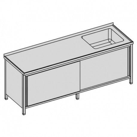 Umývací pracovný stôl jednodrezový, krytovaný s posuvnými dverami/dlhý 190x60