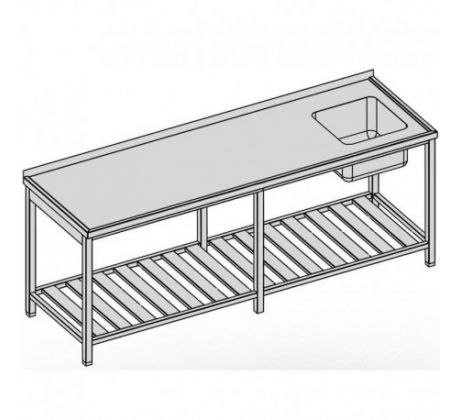 Umývací stôl s jedným drezom a roštom/dlhý 260x60