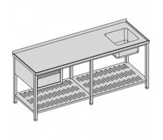 - Umývacie stoly s jedným drezom, zásuvkou a perforovanou policou/dlhé