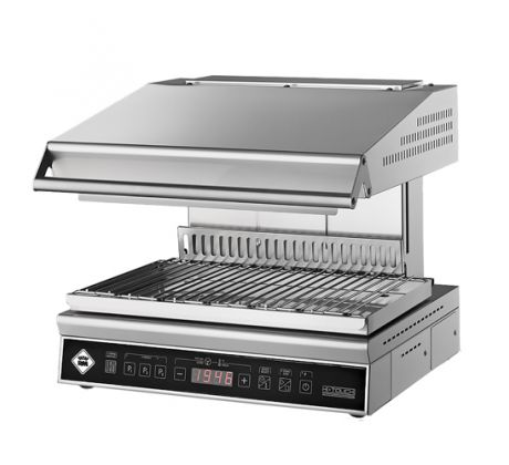 | Popis: | rozmer: 570x580x520mm(šxhxv) príkon elektro: 4,5kW/400V rozmer roštu: 560x360mm polohovatelné výhrevné telesá 3 výhrevné regulovateľné zóny 2 varianty náhrevu max. pracovná teplota 230°C nástup teploty 200°C za 8 sekúnd ohrevné telesá chránené difúznym sklom pre jednoduché čistenie automatická regulácia teploty možnosť montáže na stenu (držiak v cene) ovládací panel s LED displejom, dotykový, programovateľný veľkosť GN 1/1 automatické vypnutie po skončení cyklu s akustickým signálom skončenia detektor jedla - automatické zap./vyp. telies pri kontakte so zadnou lištou funkcia HOLD udržiavania pri teplote 40-70°C, 8 stupňová možnosť zapnutia iba vybranej časti telies možnosť vytvorenia vlastných programov |